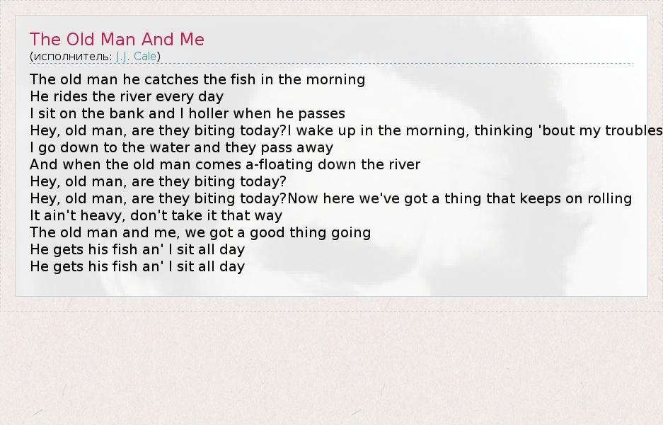 А как ты думаешь, о чем песня "The Old Man And Me" ?