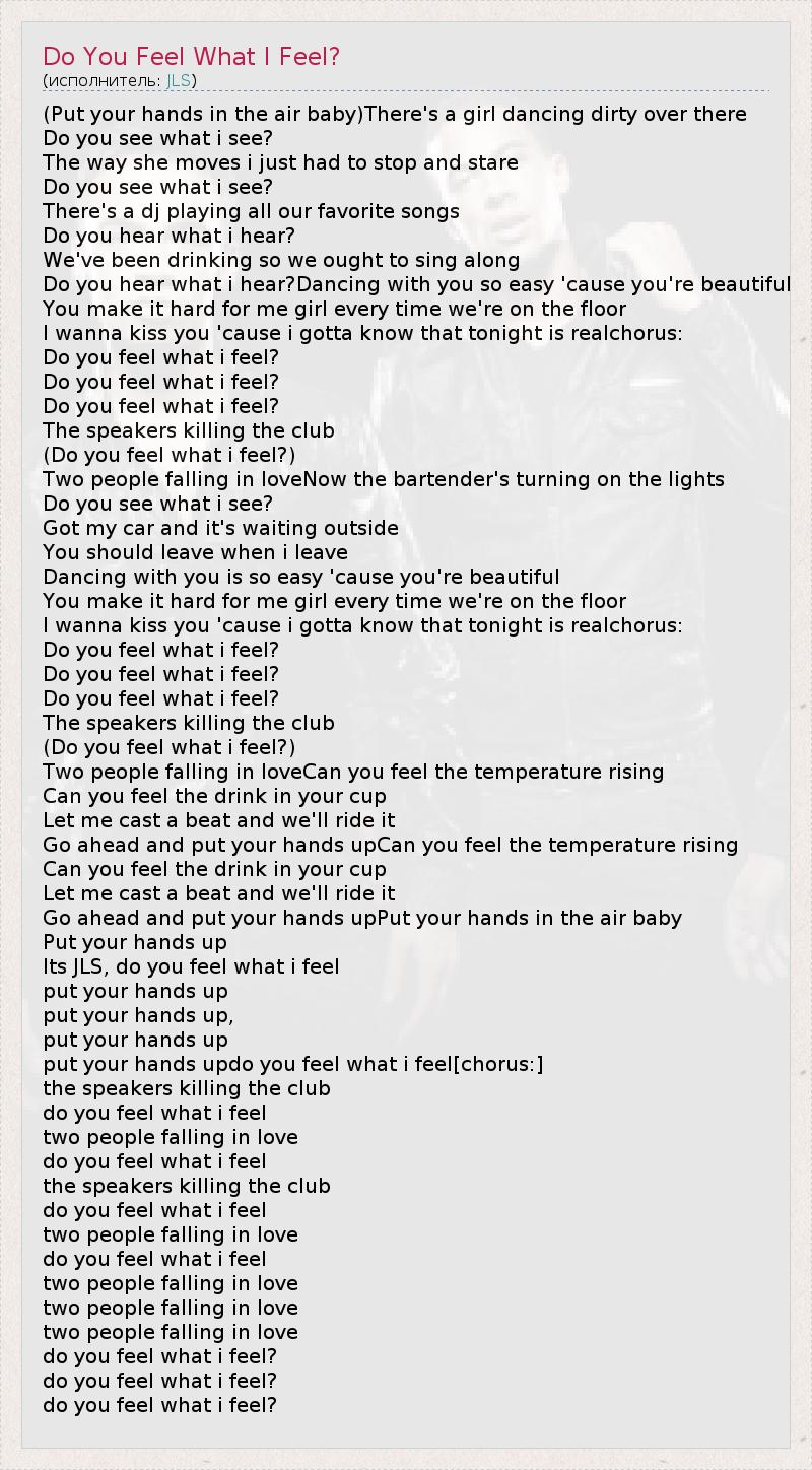А как ты думаешь, о чем песня "Do You Feel What I Feel?" ?
