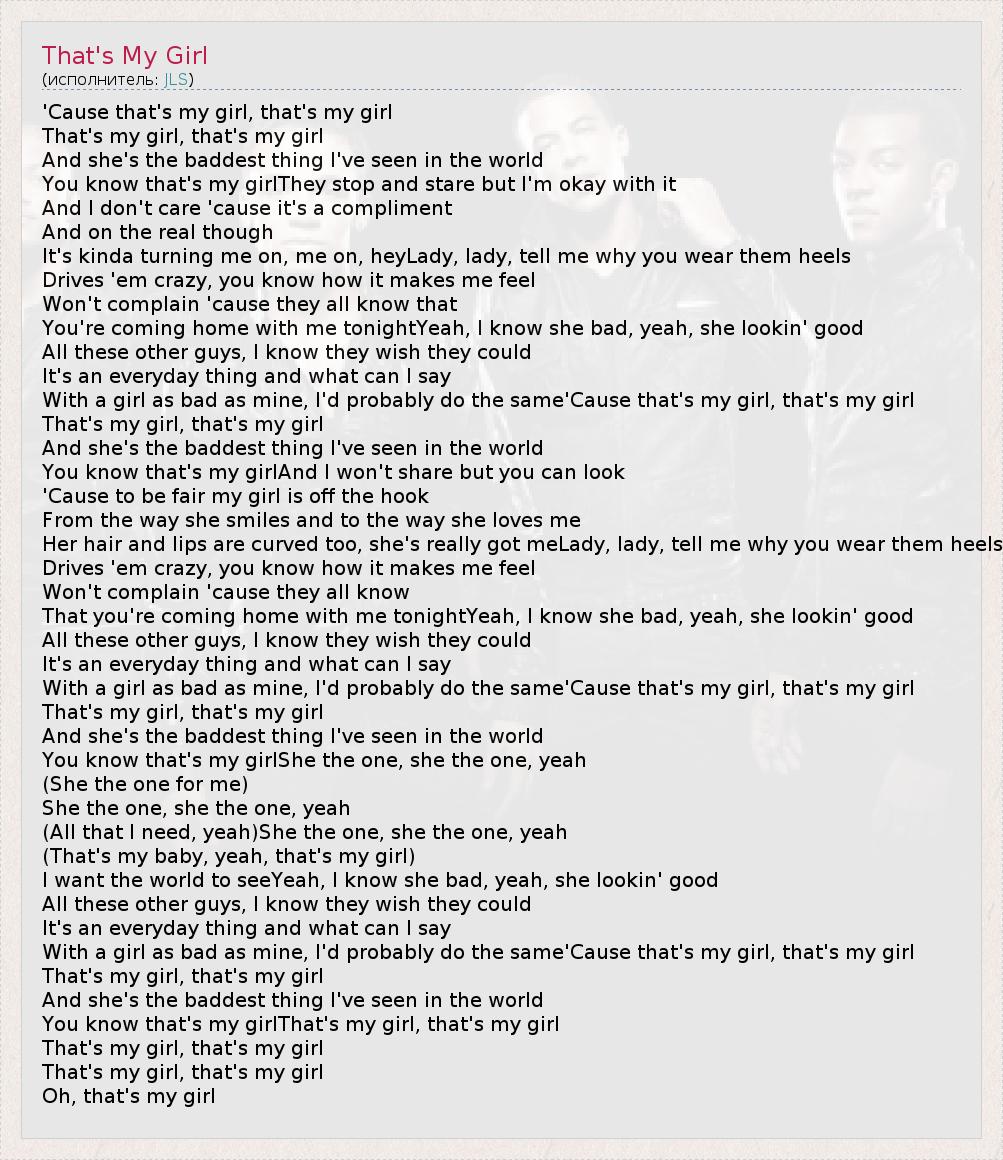 А как ты думаешь, о чем песня "That's My Girl" ?