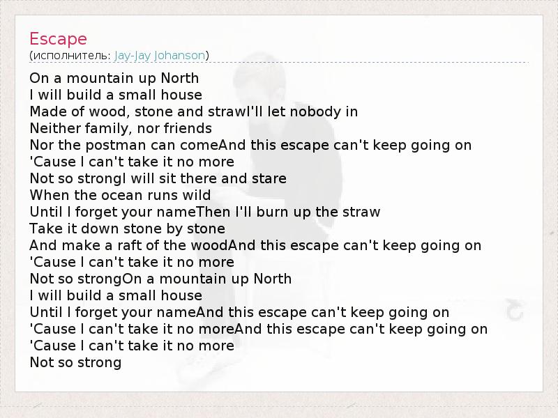 А как ты думаешь, о чем песня "Escape" ?