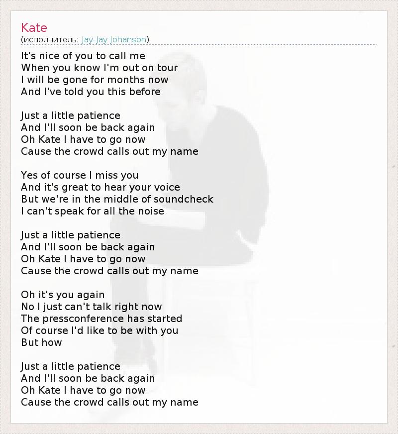 А как ты думаешь, о чем песня "Kate" ?
