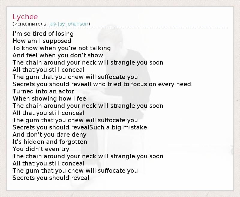 Это интересно:Швеция, г. Трольхеттан. Удивительный человек Джей-Джей Йохансон (Jaje «Jay-Jay» Johanson) родился в октябре 1969 года. Родители сызмальства приучили мальчика к Элвису и Гарднеру, брат и сестра — к ABBA и Sweet; результат закономерен: фортепьяно покорено в семь лет, флейта и кларнет — в десять, саксофон — в четырнадцать. В те же радужные четырнадцать он берет в руки гитару (бас и соло) и делает первые аранжировки,... продолжение