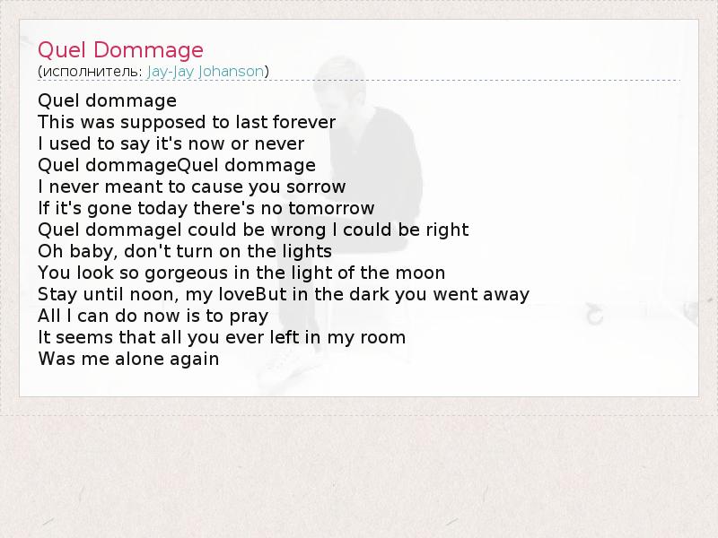 А как ты думаешь, о чем песня "Quel Dommage" ?