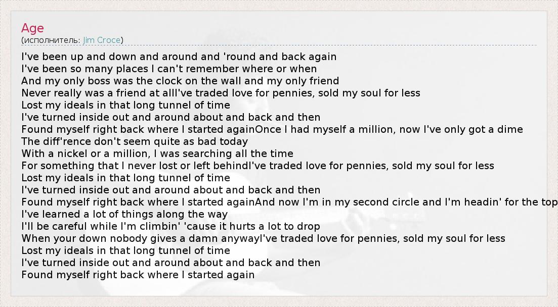 А как ты думаешь, о чем песня "Age" ?
