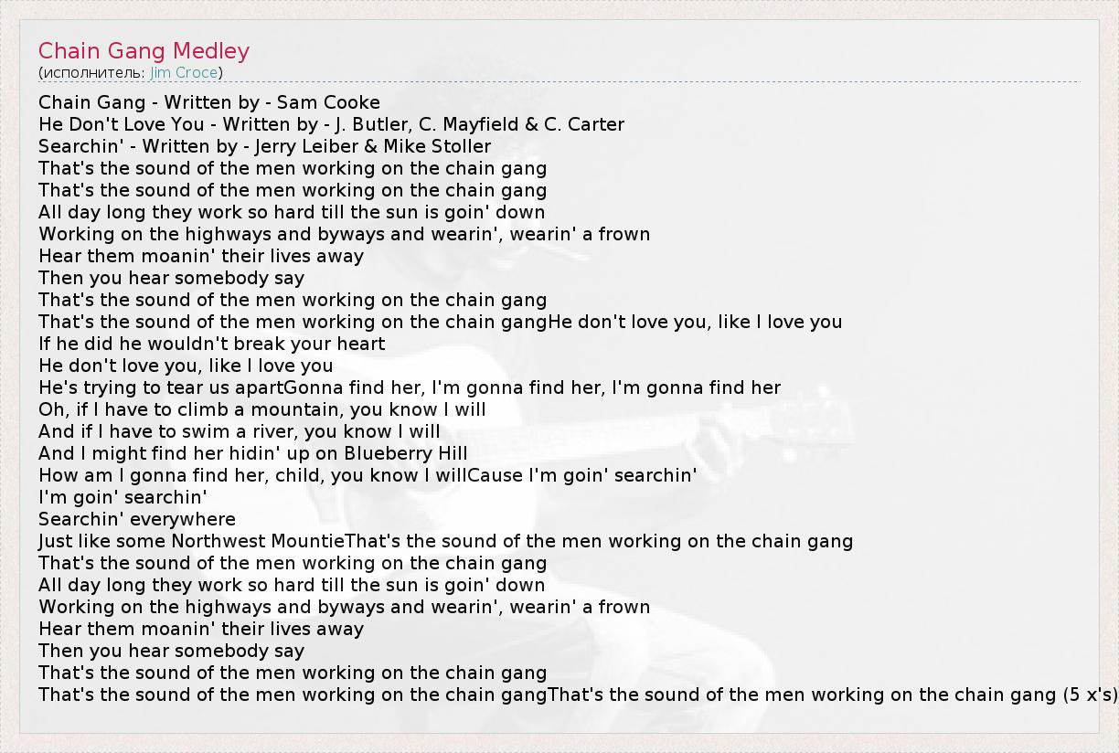 А как ты думаешь, о чем песня "Chain Gang Medley" ?