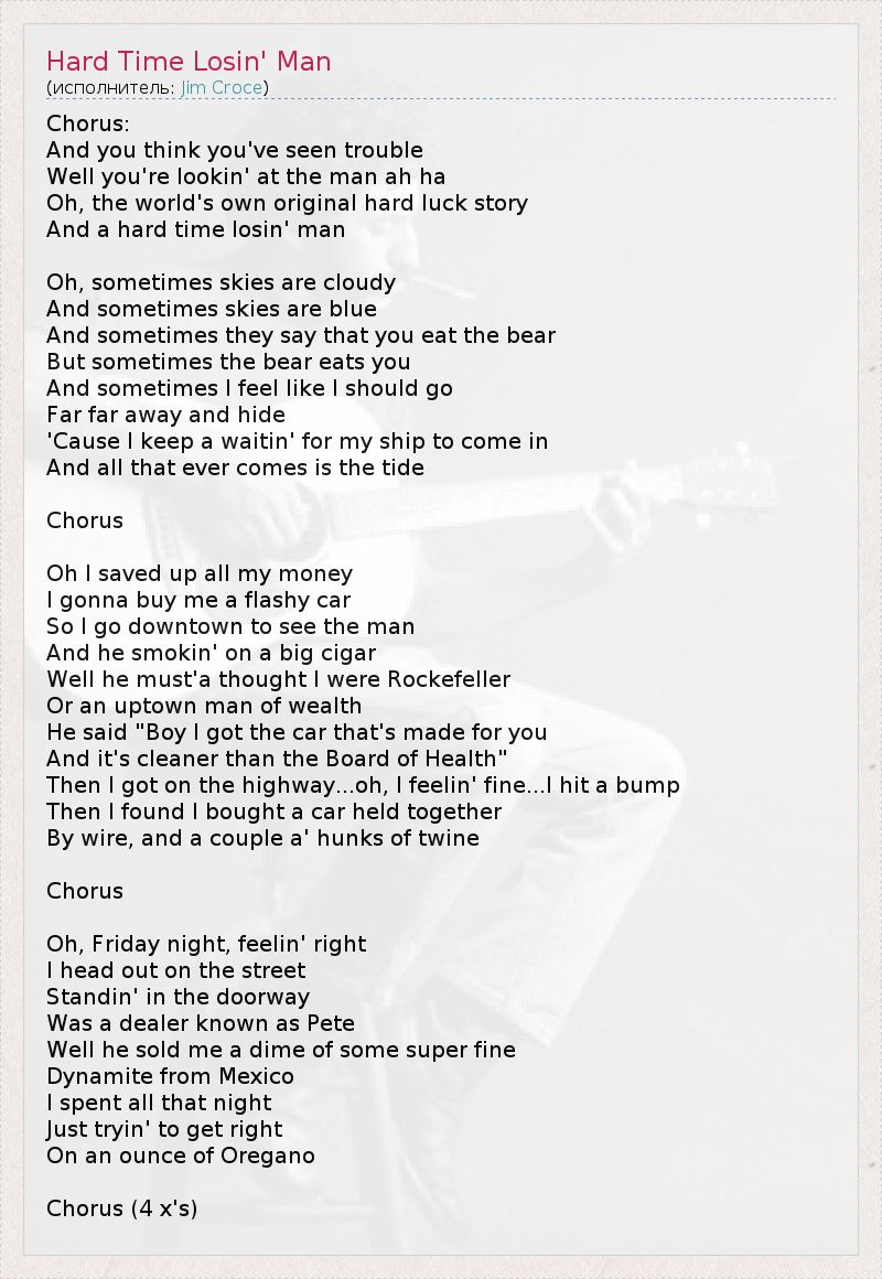 А как ты думаешь, о чем песня "Hard Time Losin' Man" ?