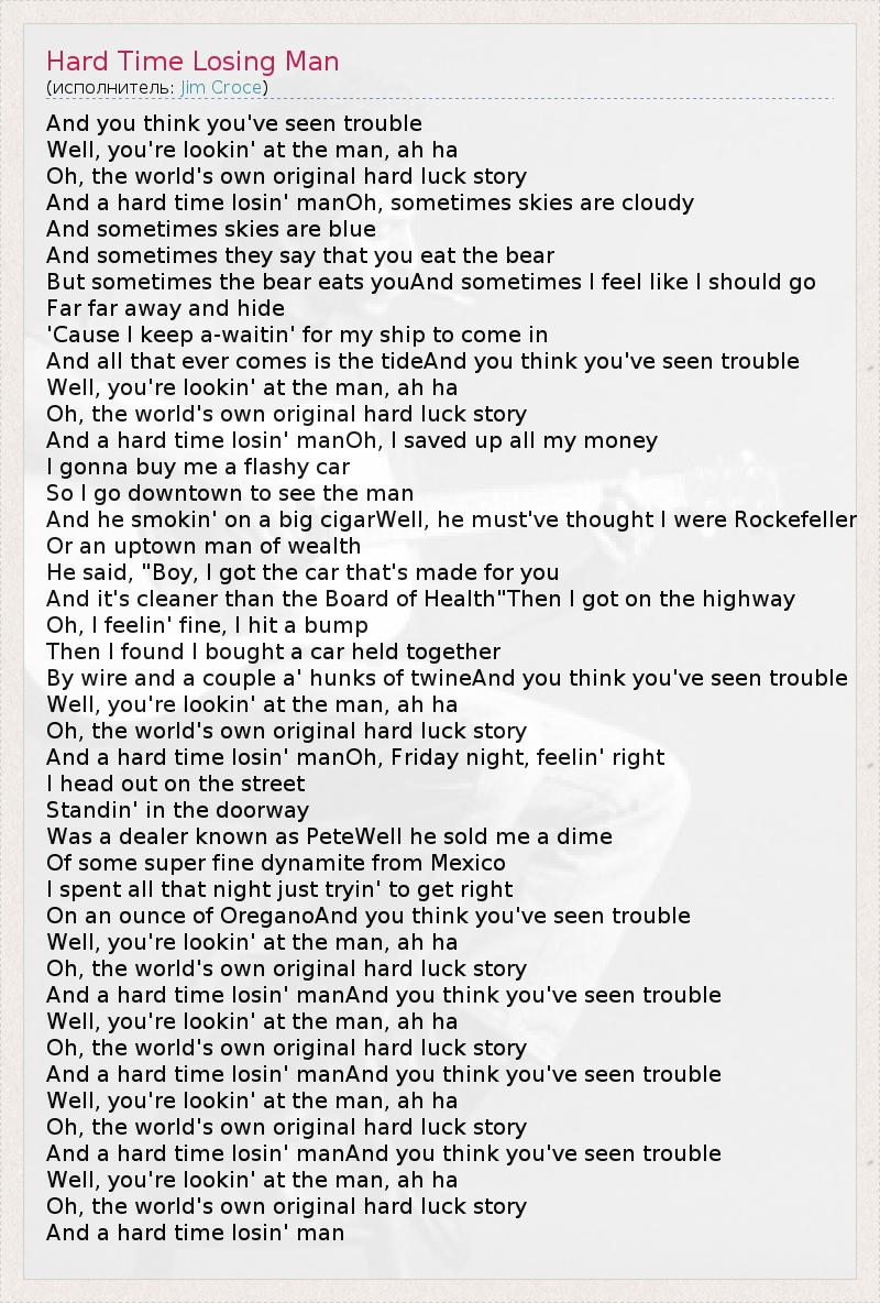 А как ты думаешь, о чем песня "Hard Time Losing Man" ?
