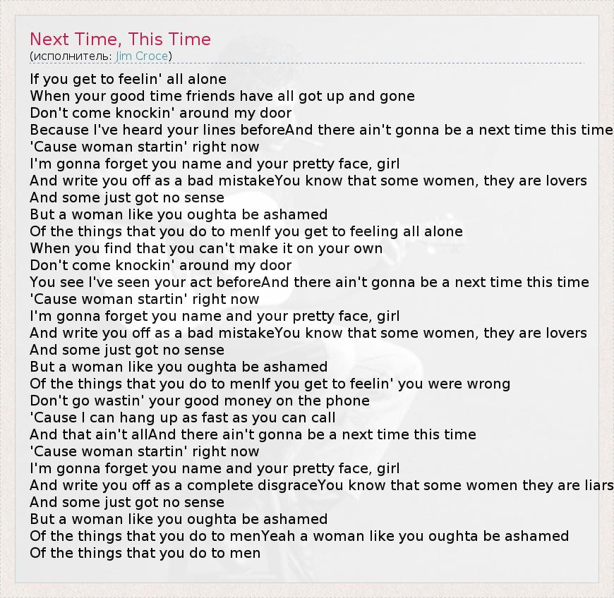 А как ты думаешь, о чем песня "Next Time, This Time" ?