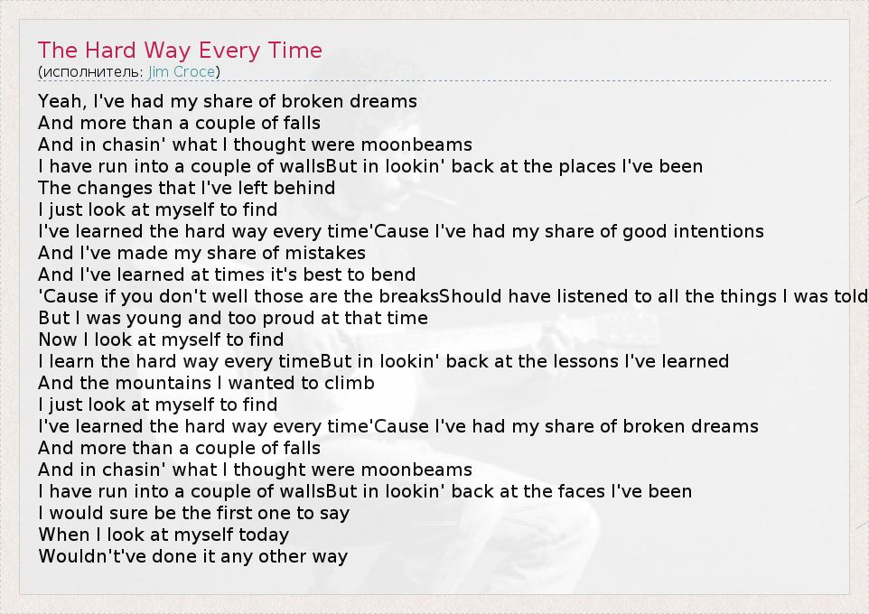 А как ты думаешь, о чем песня "The Hard Way Every Time" ?