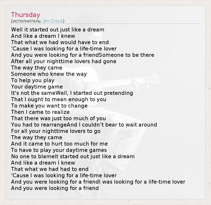 А как ты думаешь, о чем песня "Thursday" ?