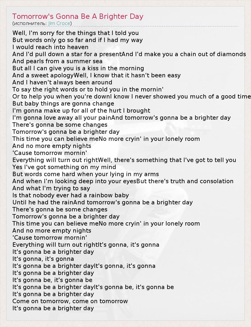 А как ты думаешь, о чем песня "Tomorrow's Gonna Be A Brighter Day" ?