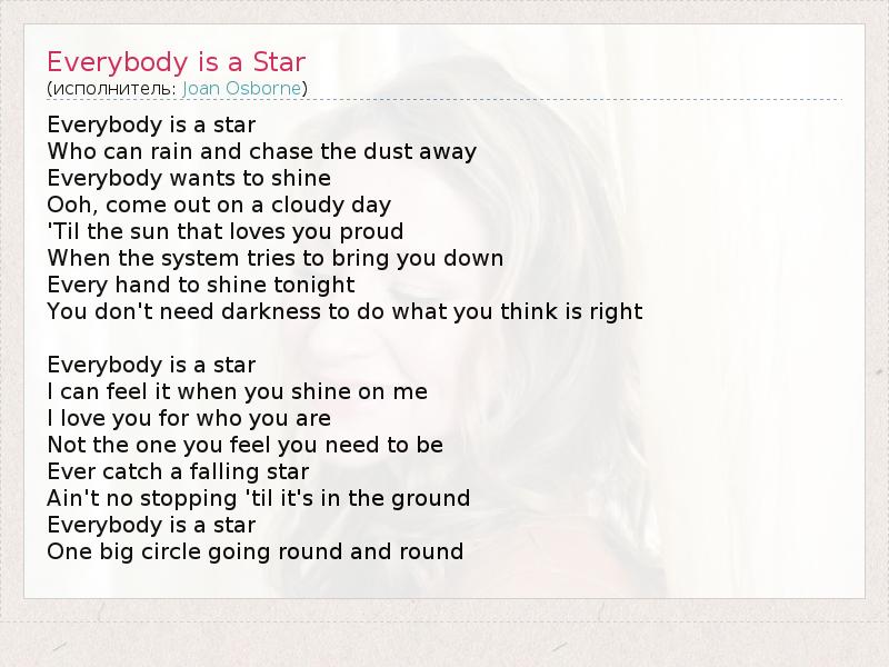 А как ты думаешь, о чем песня "Everybody is a Star" ?