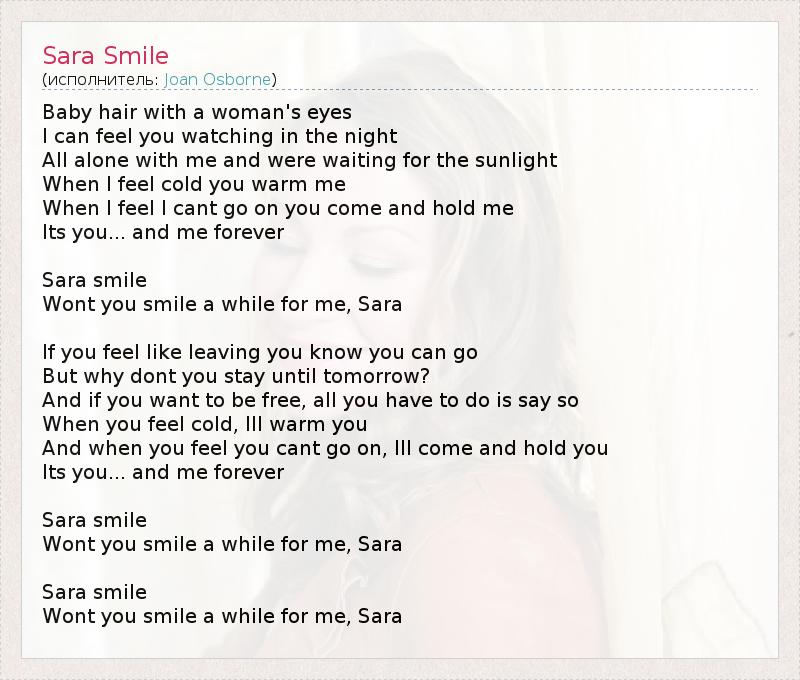 А как ты думаешь, о чем песня "Sara Smile " ?
