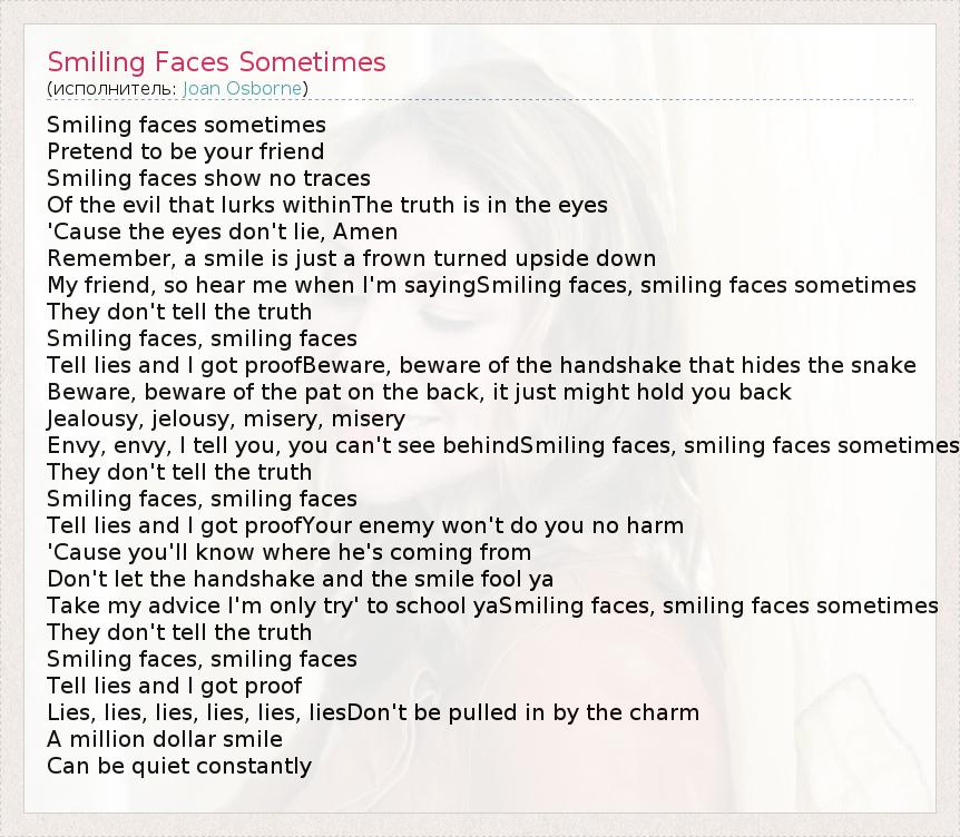 А как ты думаешь, о чем песня "Smiling Faces Sometimes" ?