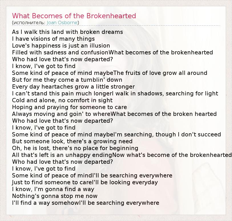 А как ты думаешь, о чем песня "What Becomes of the Brokenhearted" ?