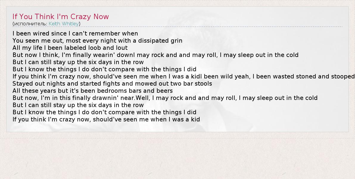 ГлавнаяИсполнителиKeith WhitleyIf You Think I'm Crazy Now
