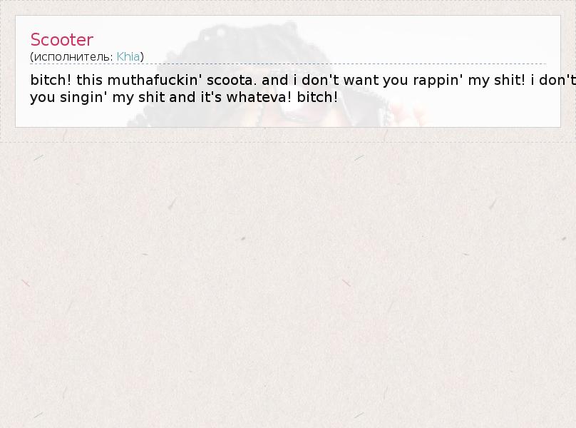 bitch! this muthafuckin' scoota. and i don't want you rappin' my shit! i don't