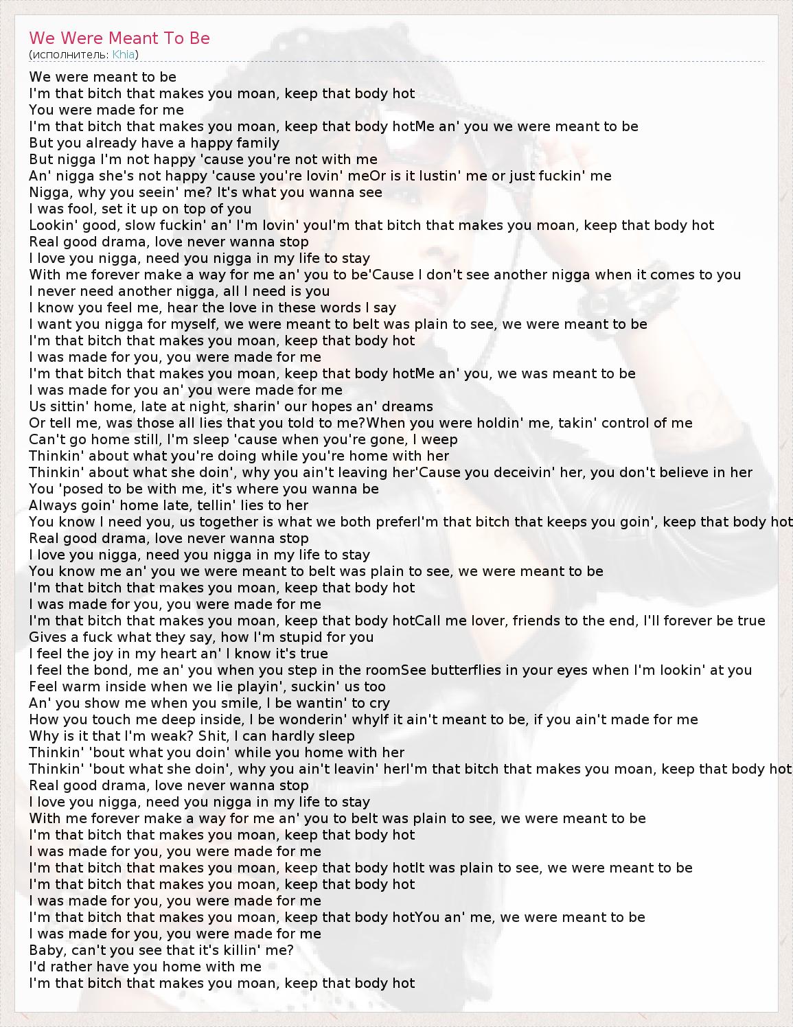 I'm that bitch that makes you moan, keep that body hotMe an' you we were meant to be