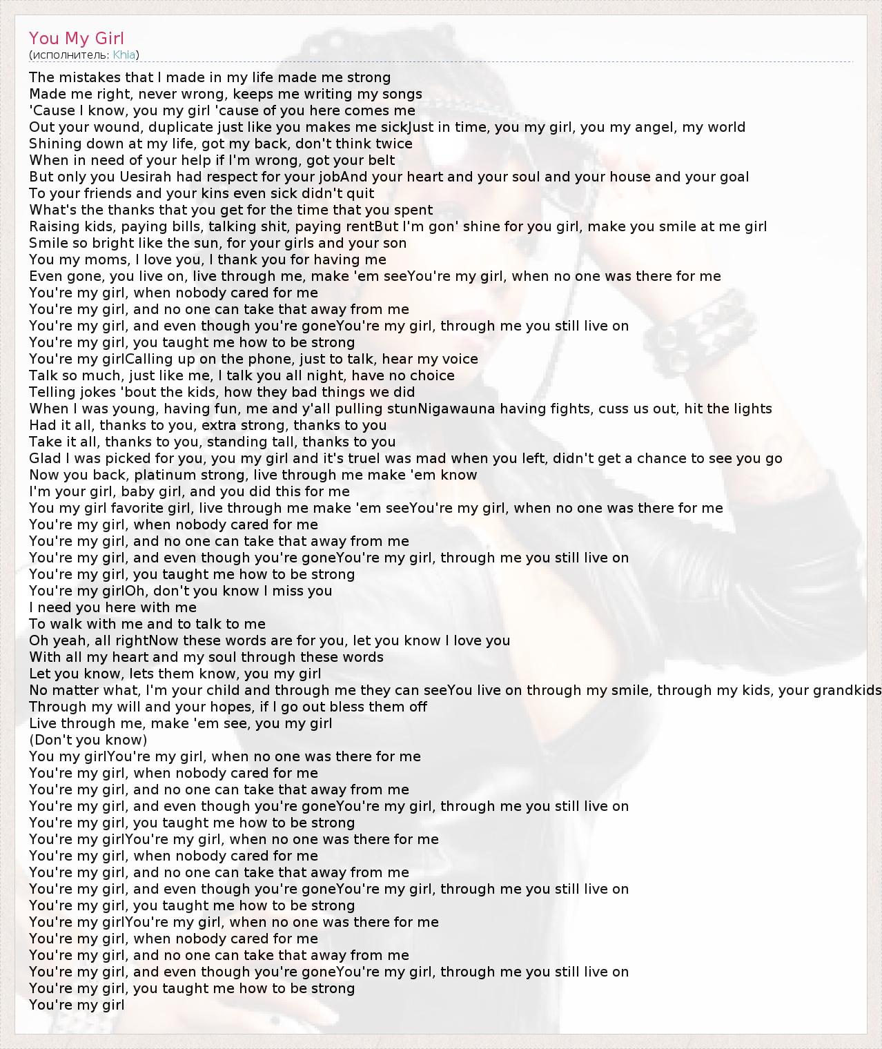 You my girl favorite girl, live through me make 'em seeYou're my girl, when no one was there for me