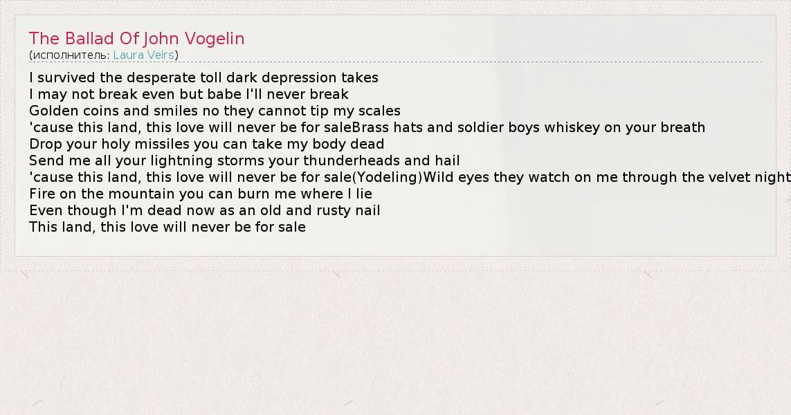 ГлавнаяИсполнителиLaura VeirsThe Ballad Of John Vogelin