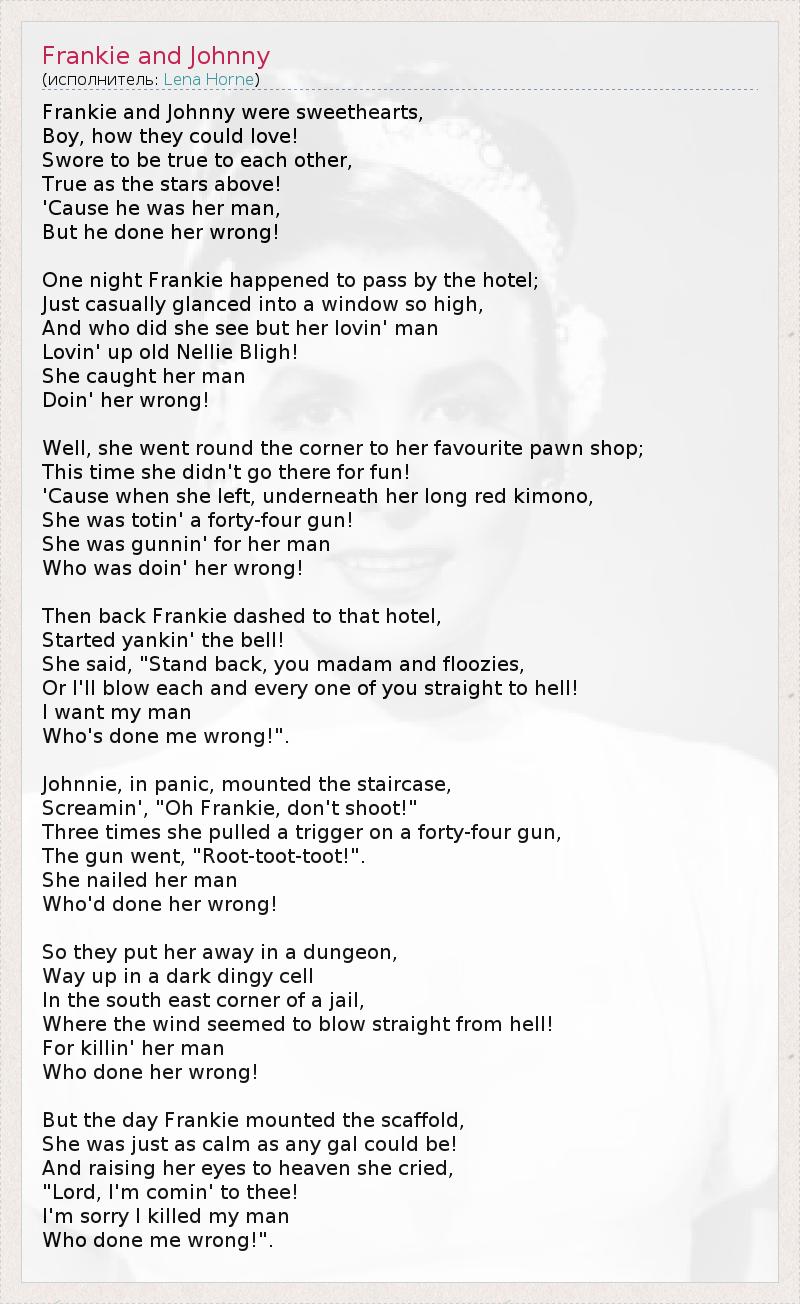 А как ты думаешь, о чем песня "Frankie and Johnny" ?