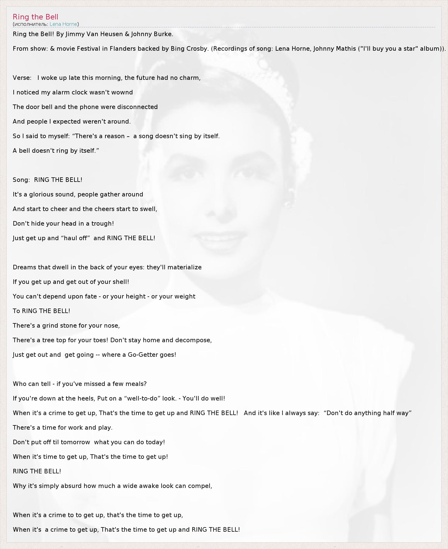 Ring the Bell! By Jimmy Van Heusen & Johnny Burke.