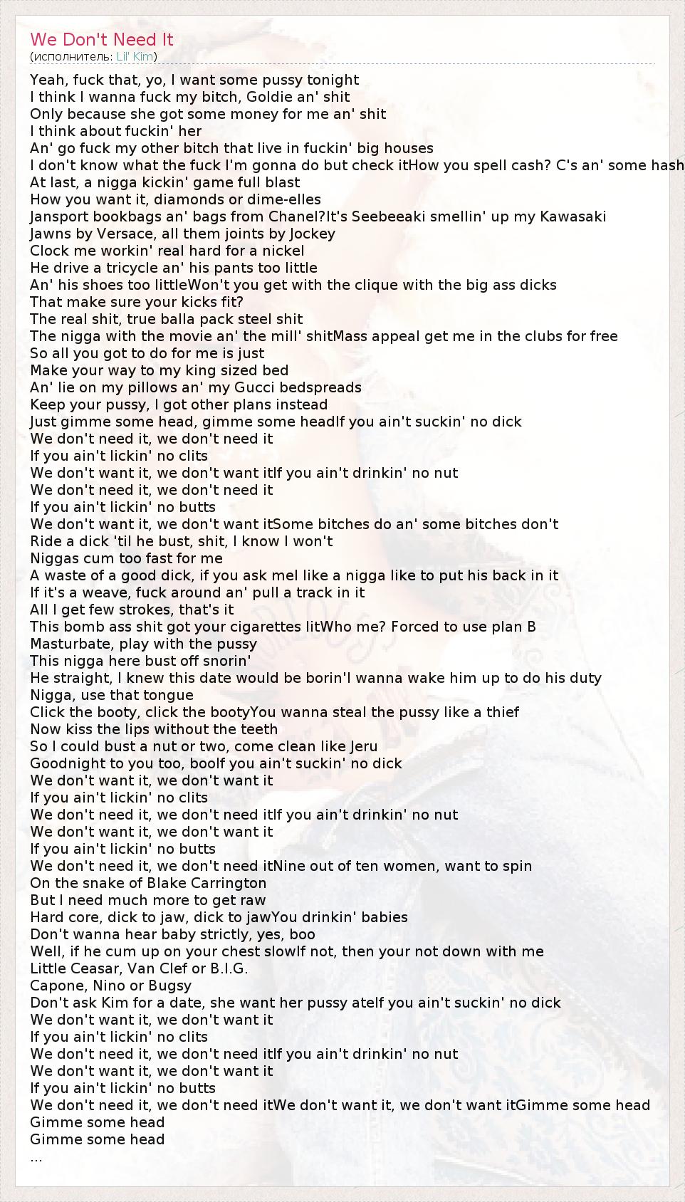 А как ты думаешь, о чем песня "We Don't Need It" ?
