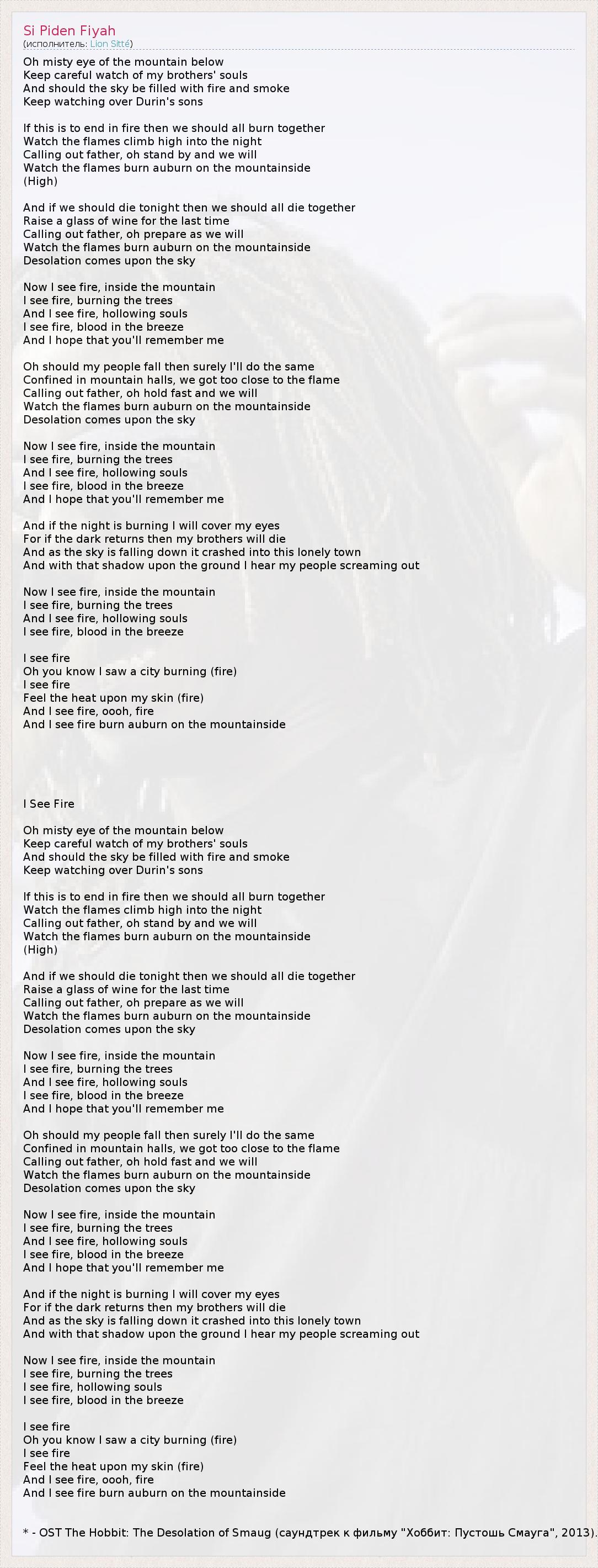 * - OST The Hobbit: The Desolation of Smaug (саундтрек к фильму "Хоббит: Пустошь Смауга", 2013).