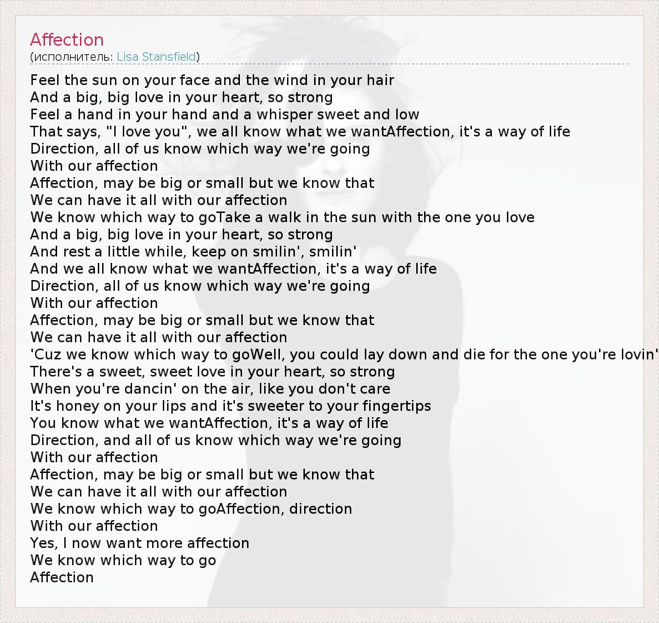 А как ты думаешь, о чем песня "Affection" ?