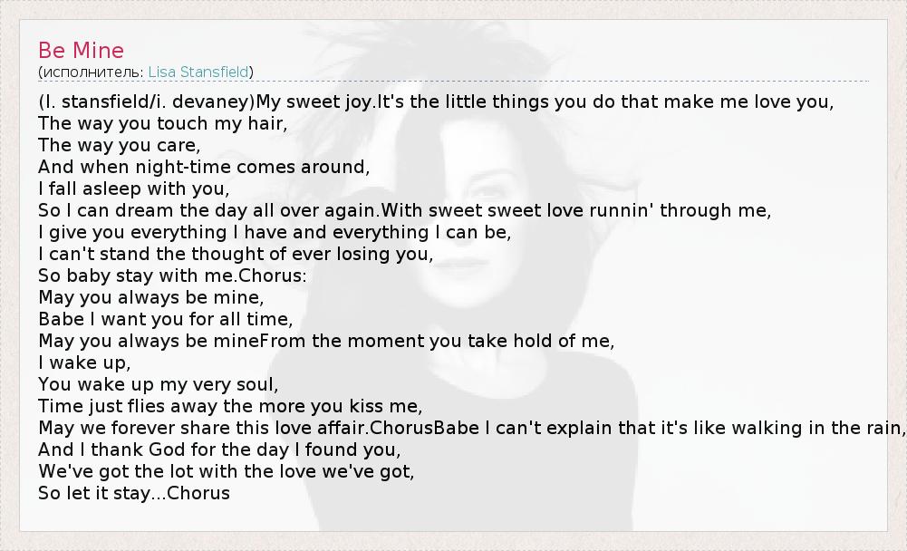 (l. stansfield/i. devaney)My sweet joy.It's the little things you do that make me love you,