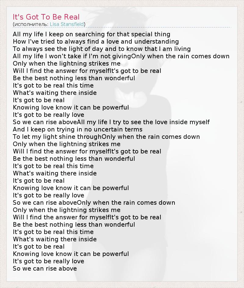 А как ты думаешь, о чем песня "It's Got To Be Real" ?