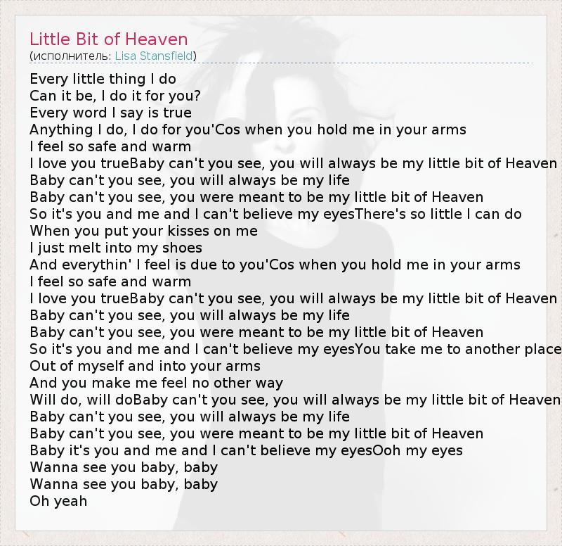 А как ты думаешь, о чем песня "Little Bit of Heaven" ?