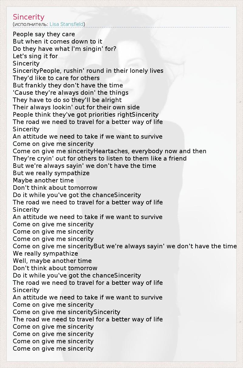 А как ты думаешь, о чем песня "Sincerity" ?
