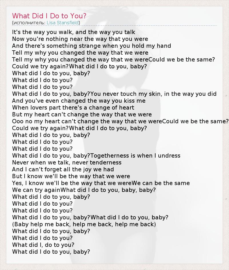 А как ты думаешь, о чем песня "What Did I Do to You?" ?