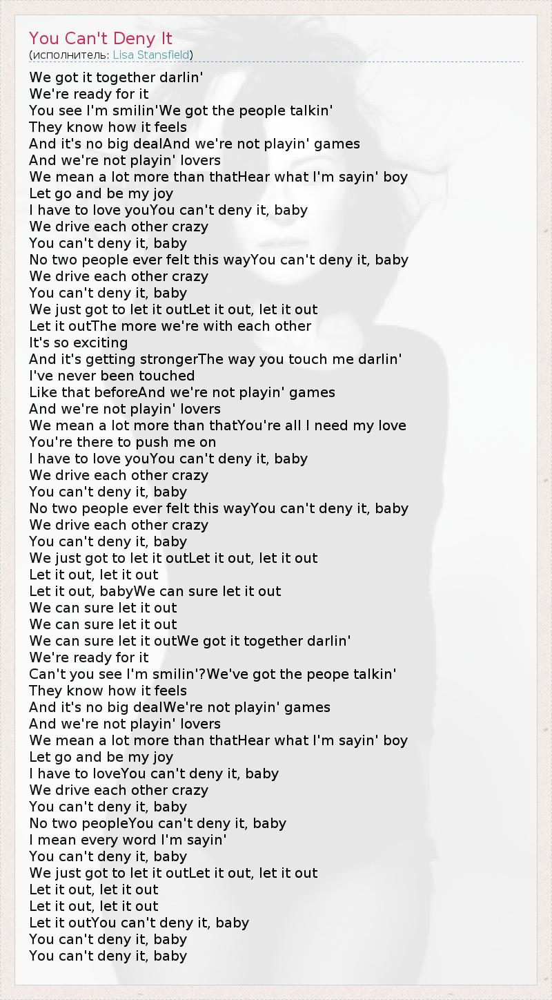 А как ты думаешь, о чем песня "You Can't Deny It" ?