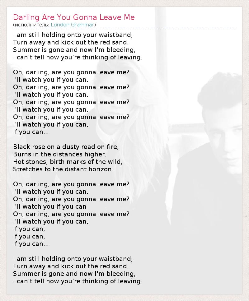 ГлавнаяИсполнителиLondon GrammarDarling Are You Gonna Leave Me