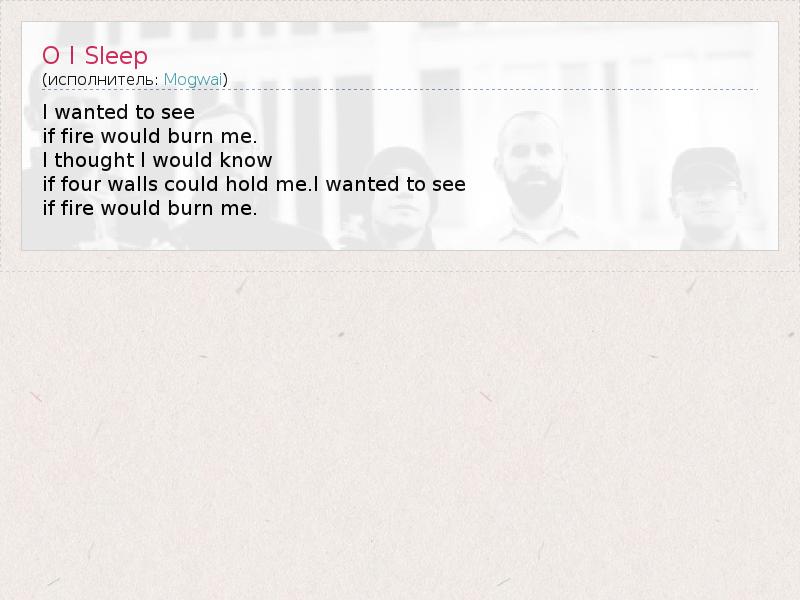 А как ты думаешь, о чем песня "O I Sleep" ?