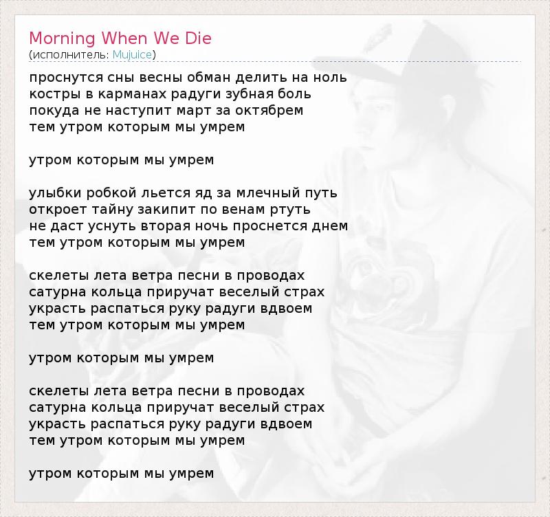 А как ты думаешь, о чем песня "Morning When We Die" ?