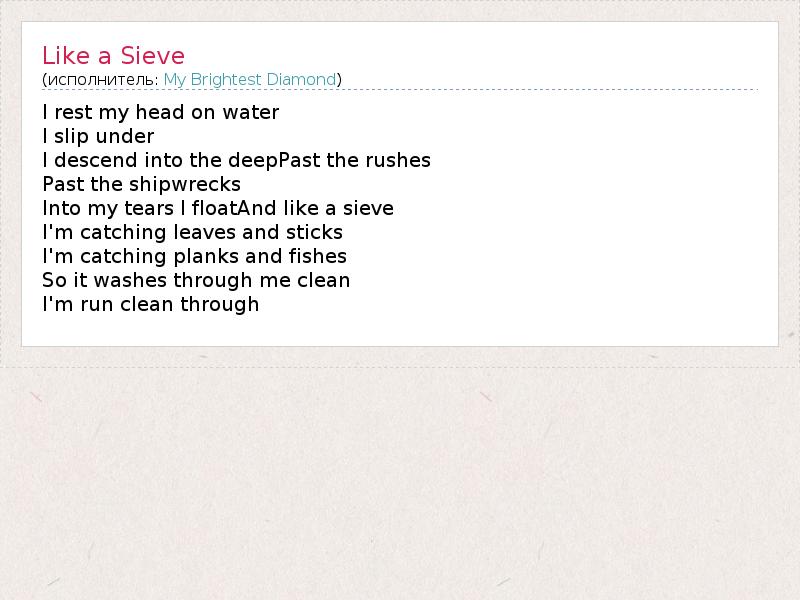 А как ты думаешь, о чем песня "Like a Sieve" ?