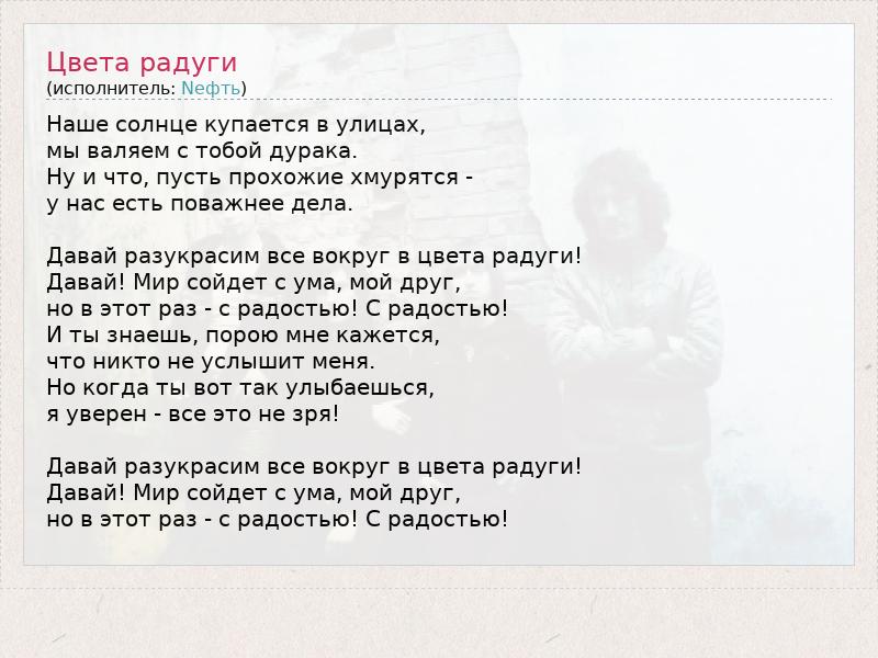 А как ты думаешь, о чем песня "Цвета радуги" ?