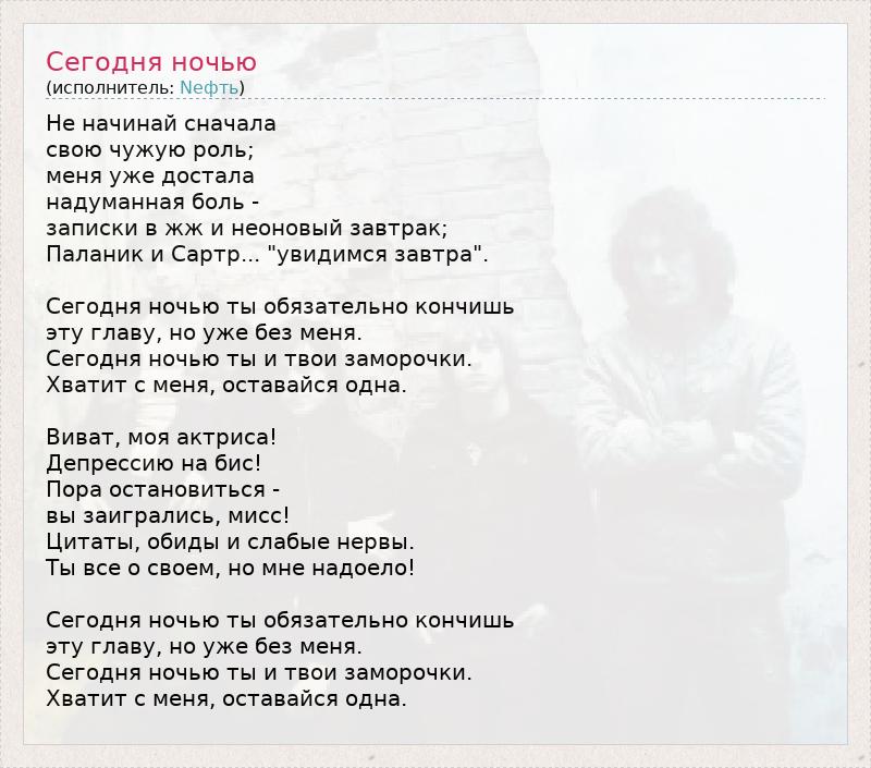 А как ты думаешь, о чем песня "Сегодня ночью" ?