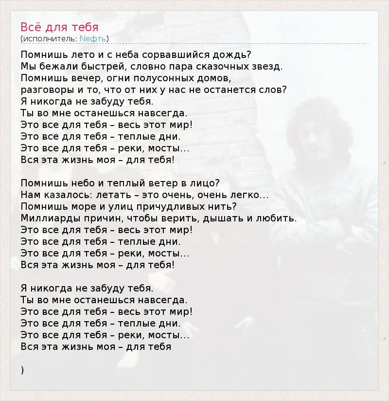 А как ты думаешь, о чем песня "Всё для тебя" ?