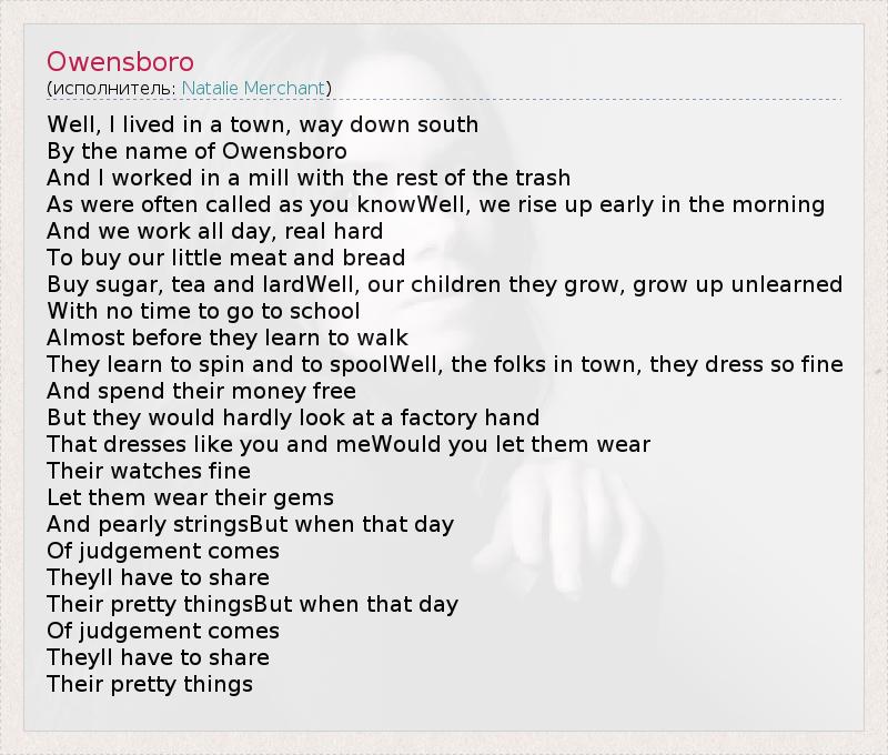 А как ты думаешь, о чем песня "Owensboro" ?