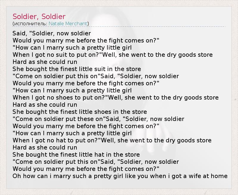 А как ты думаешь, о чем песня "Soldier, Soldier" ?