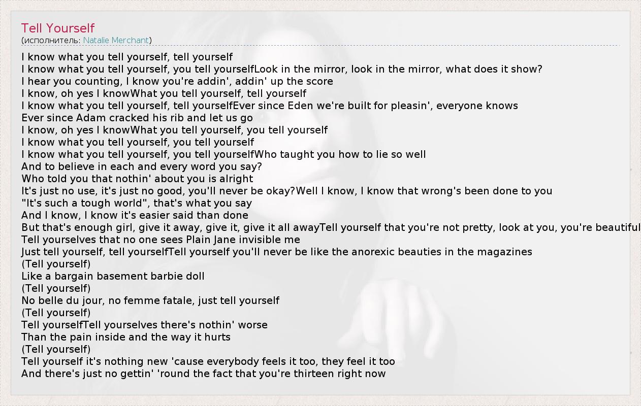А как ты думаешь, о чем песня "Tell Yourself" ?