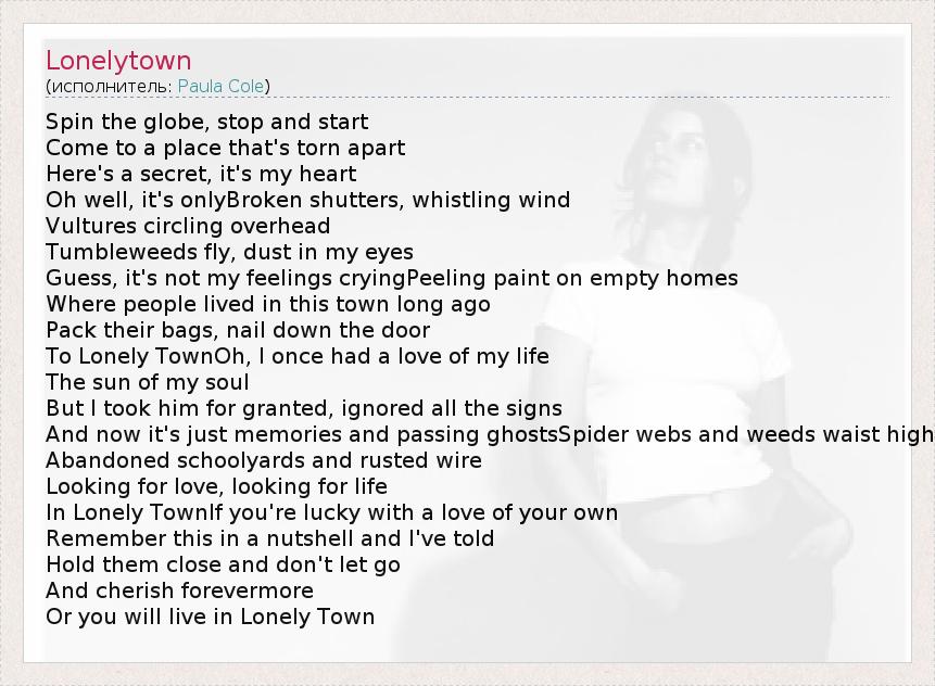 А как ты думаешь, о чем песня "Lonelytown" ?