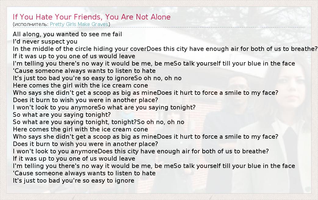 ГлавнаяИсполнителиPretty Girls Make GravesIf You Hate Your Friends, You Are Not Alone