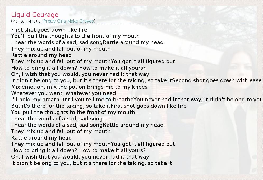 А как ты думаешь, о чем песня "Liquid Courage" ?