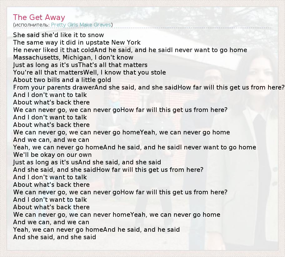Yeah, we can never go homeAnd he said, and he saidI never want to go home