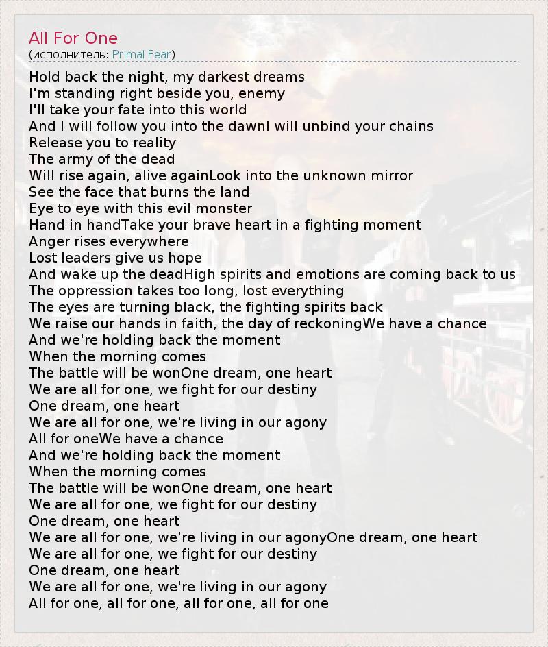 А как ты думаешь, о чем песня "All For One" ?